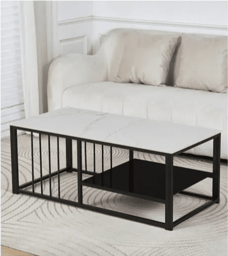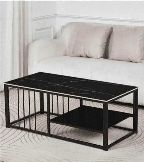 For those who appreciate modern minimalism, this Black Metal Coffee Table with Faux Marble Top is a stylish and functional addition to any room. The striking contrast between the faux marble surface and the black metal frame brings a sleek, contemporary vibe to your living area, making it a focal point for entertaining or relaxing.
