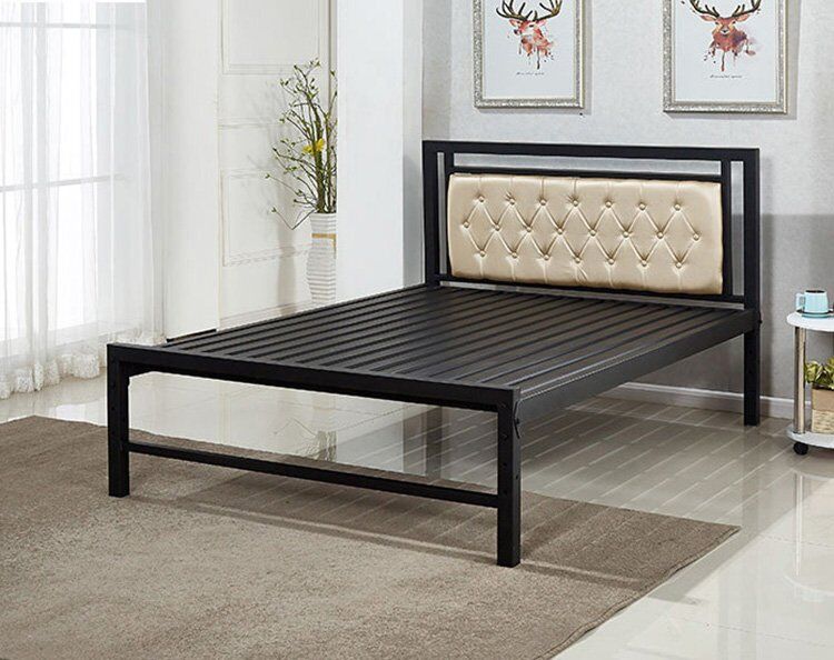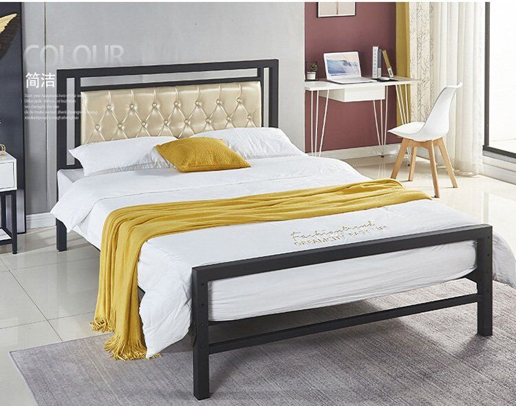 1. Sturdy Iron Frame: The bed is constructed with a durable black iron frame, providing strong support and long-lasting use.