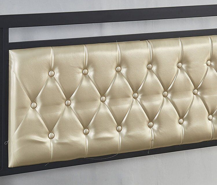 This modern industrial upholstered bed merges sleek design with luxurious comfort, making it a perfect fit for contemporary homes. The bed features a sturdy black iron frame with a tufted, cream-colored padded headboard, offering a bold yet comfortable statement in any bedroom. Its clean lines and minimalist appeal make it an excellent addition to both modern and industrial-style interiors.