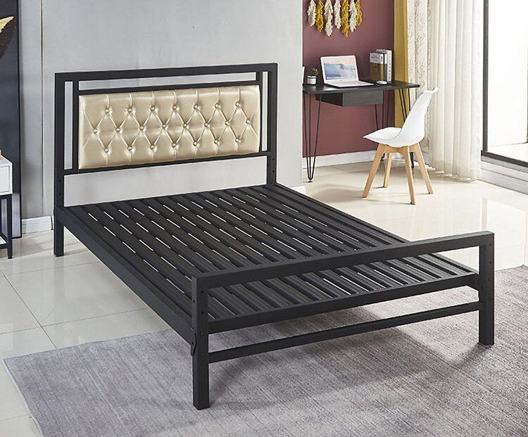 The modern industrial upholstered bed offers the perfect balance of style, comfort, and durability. Its robust iron frame and elegant tufted headboard make it a standout piece in any bedroom, providing a blend of modern industrial flair and luxurious comfort.